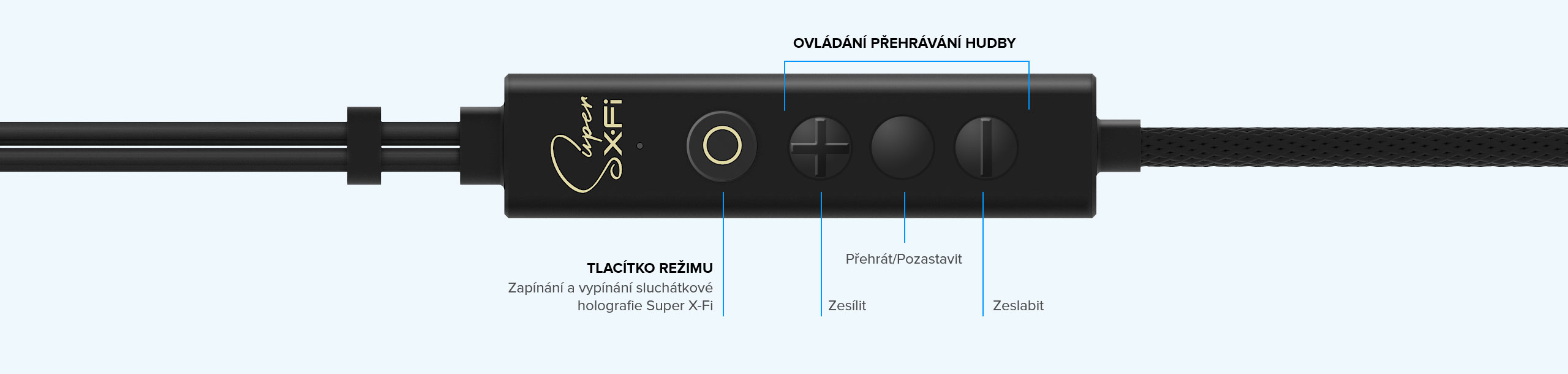 Kromě toho můžete zapínat a vypínat zvukovou holografii Super X-Fi, rychle upravovat hlasitost nebo ovládat přehrávání hudby - všechny tyhle praktické ovládací prvky jsou přístupné přímo na SXFI TRIO.